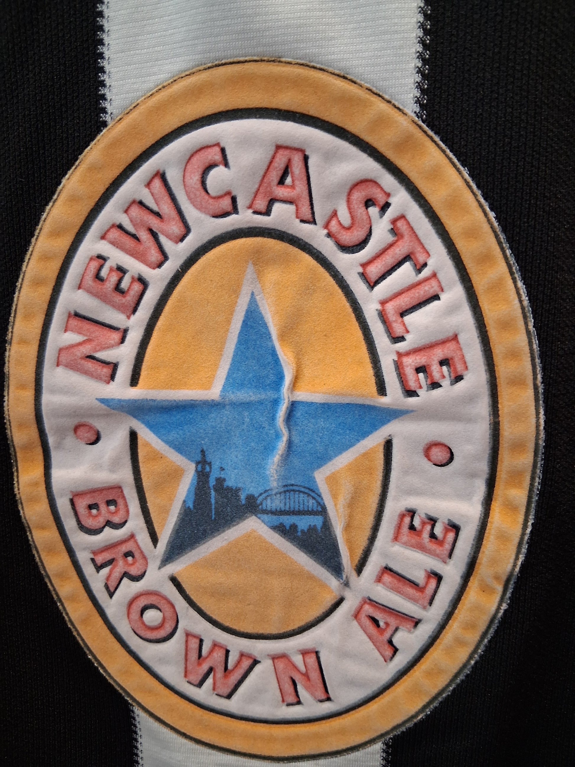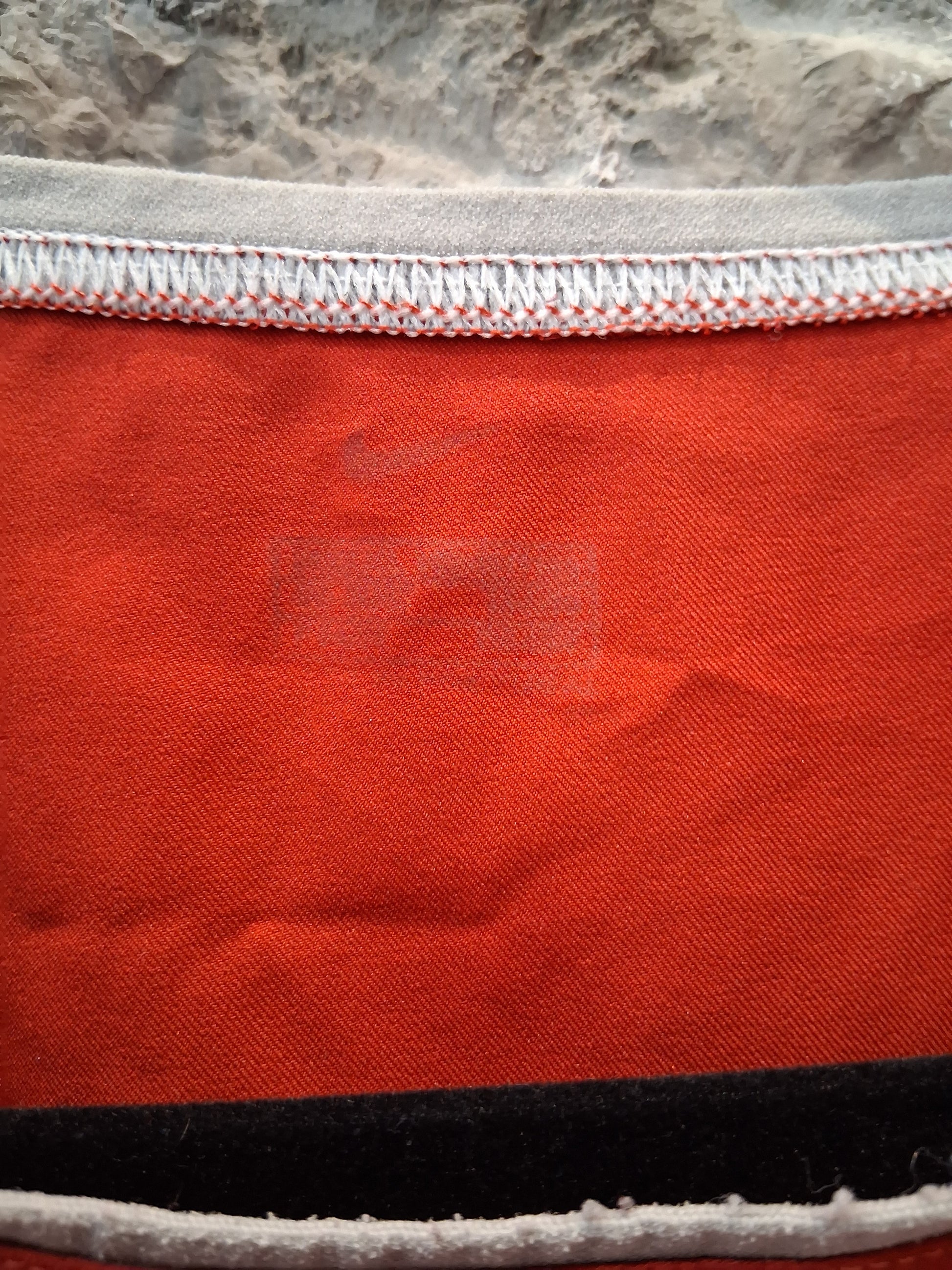 Le maillot est en bon état global, l'étiquette au col est effacée et le sponsor un peu usé.