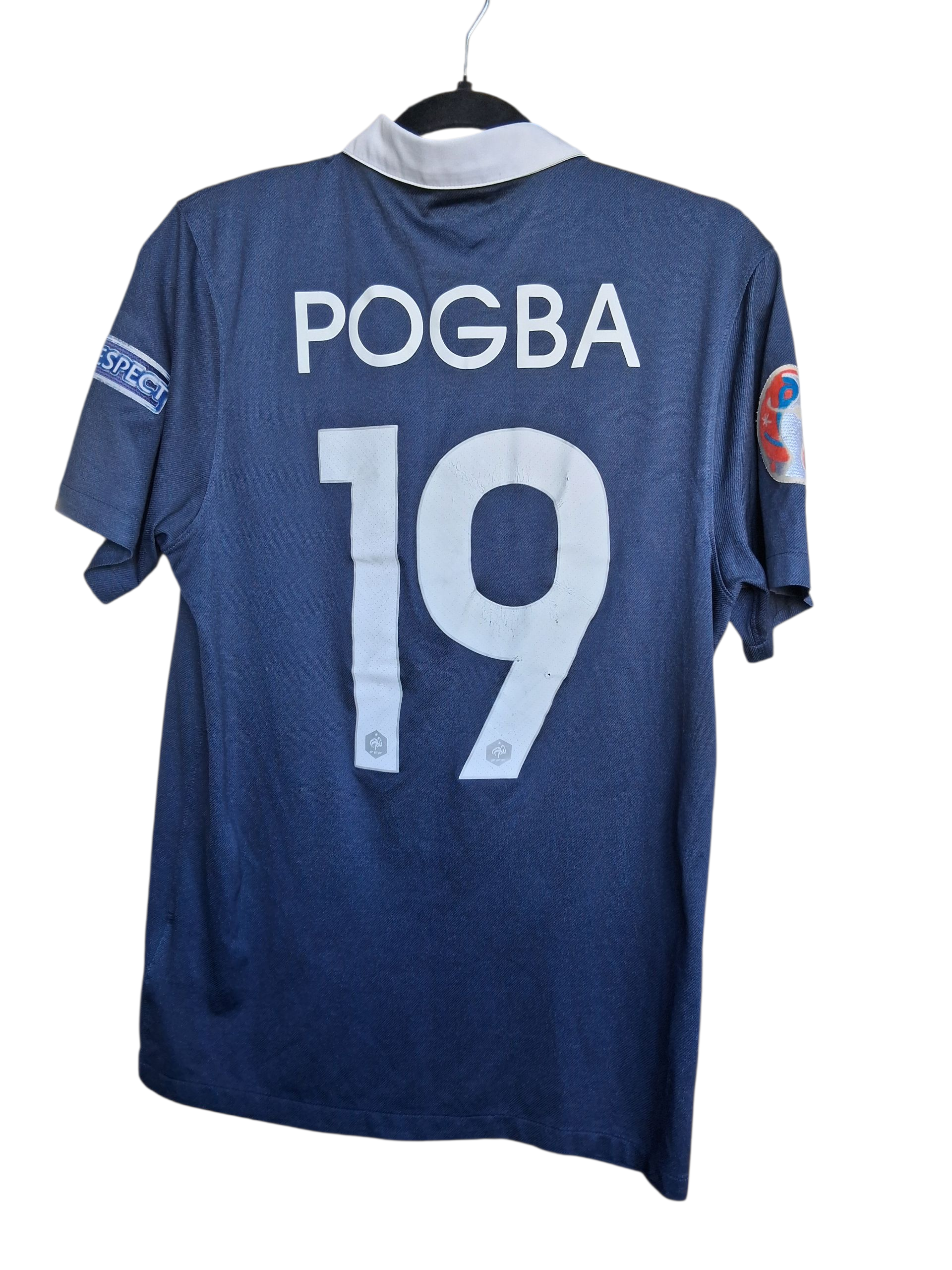 Modèle domicile porté lors de la coupe du monde au Brésil. Le maillot est floqué du numéro 19 Paul Pogba et a les patchs coupe du monde.