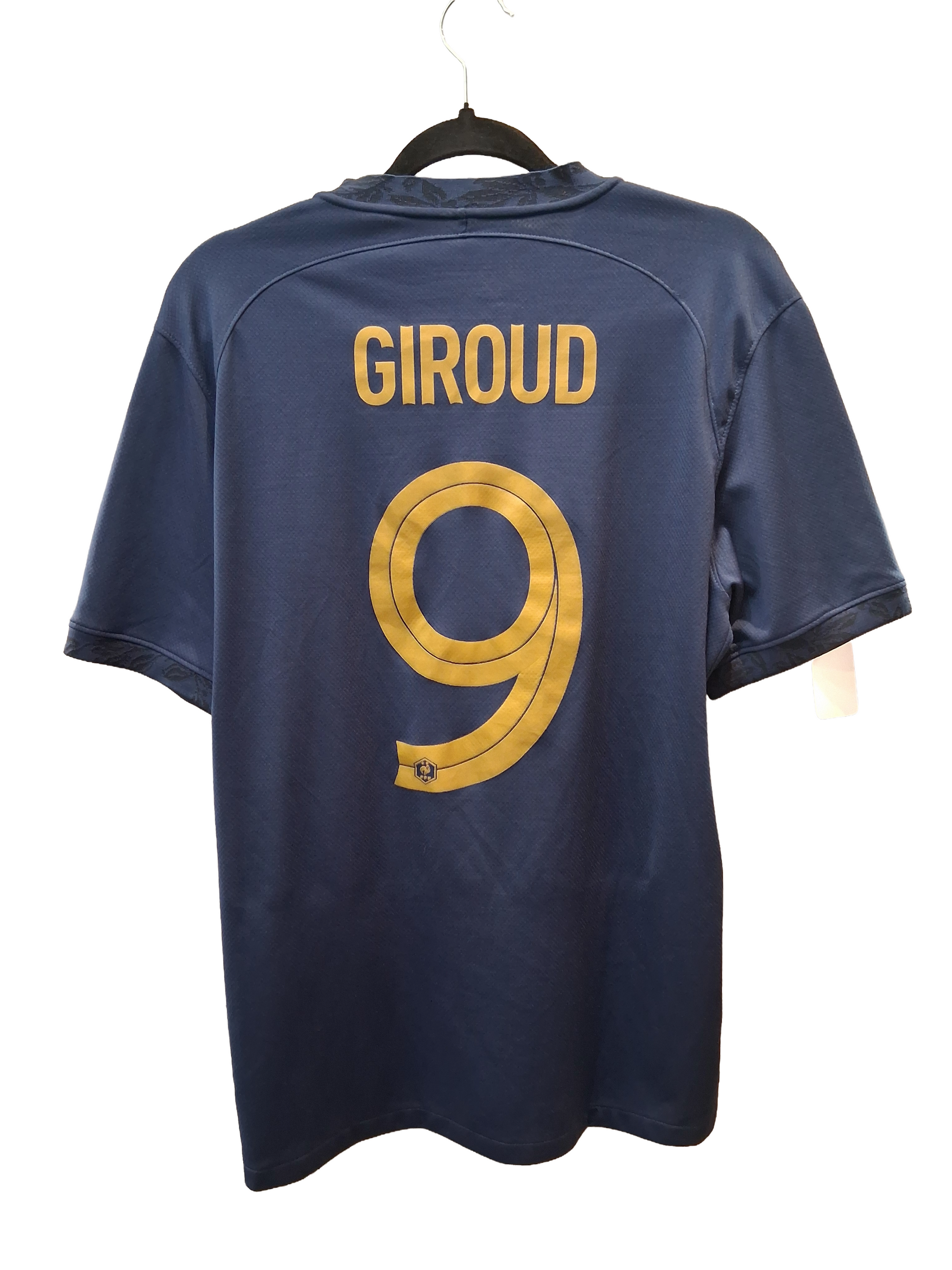 Maillot de la coupe du monde floqué au nom de la légende Olivier Giroud. Cette coupe du monde où les bleus iront en finale sera celle de la reconaissance pour le meilleur buteur de l'histoire de l'équipe de France.