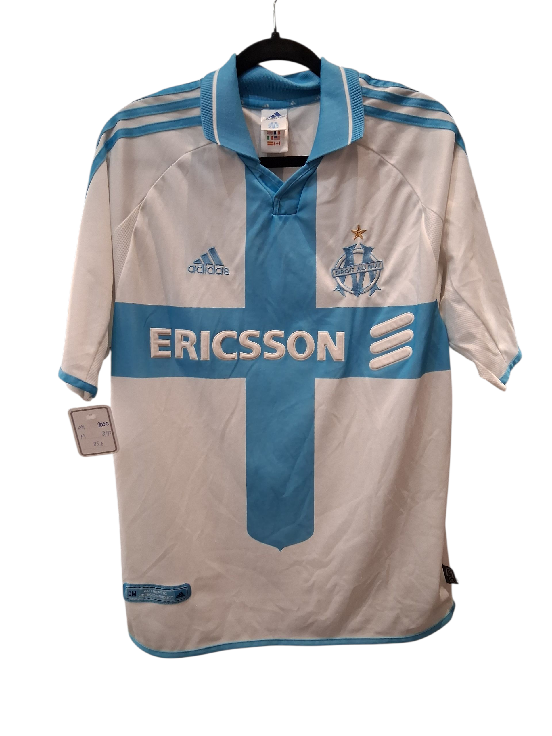 Maillot domicile de l'Olympique de Marseille, avec le sponsor Ericsson.