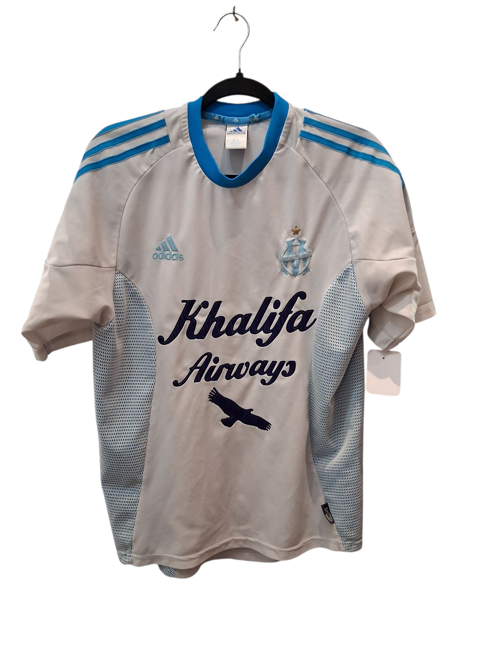 Maillot domicile de l'Olympique de Marseille, avec le sponsor Khalifa Ayrways.