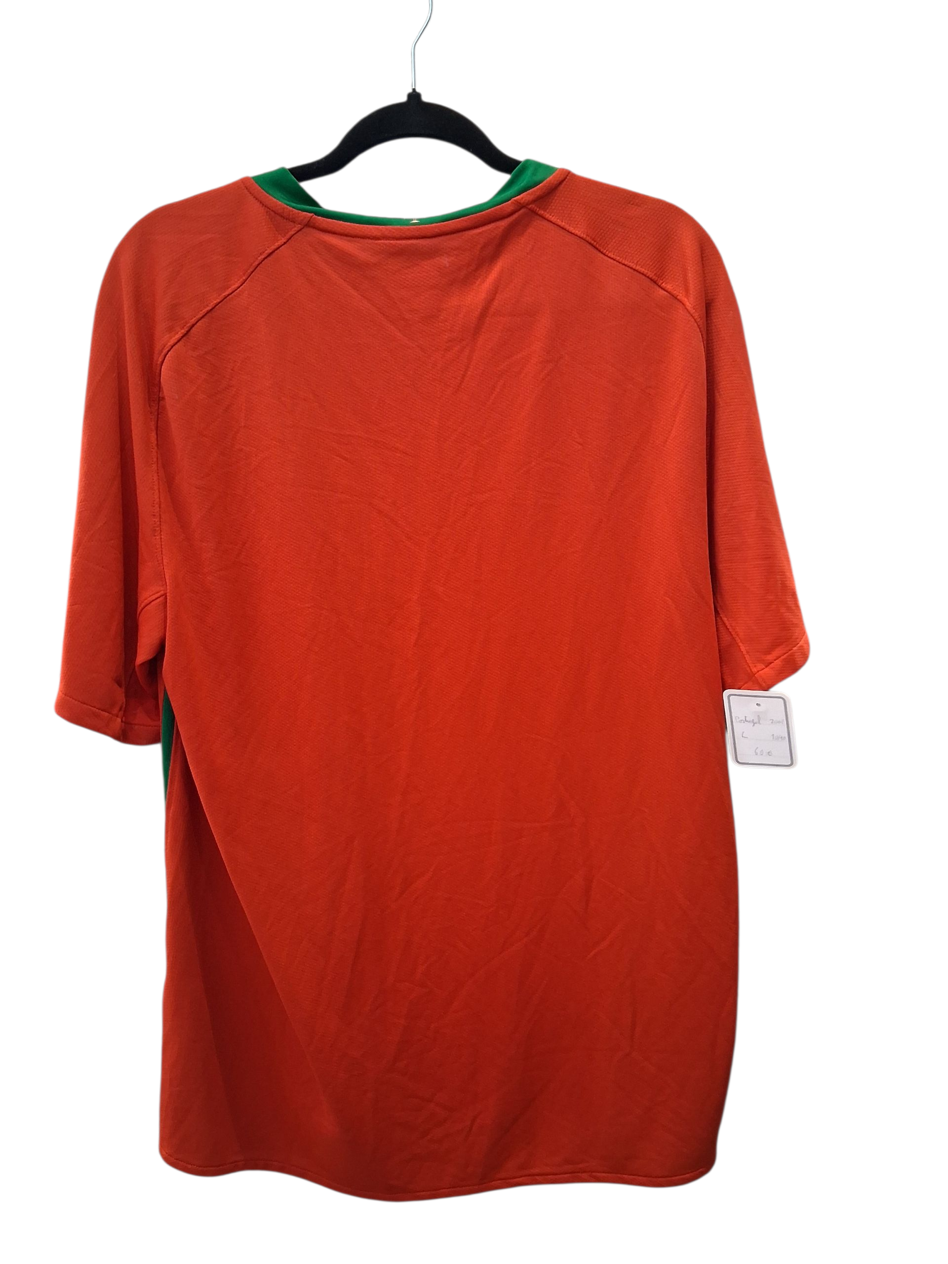Maillot domicile 2008 du Portugal. Modèle porté à l'Euro qui emmènera la Selaçao jusqu'en demi finale ou elle sera éliminée en quart de final par l'Allemagne.