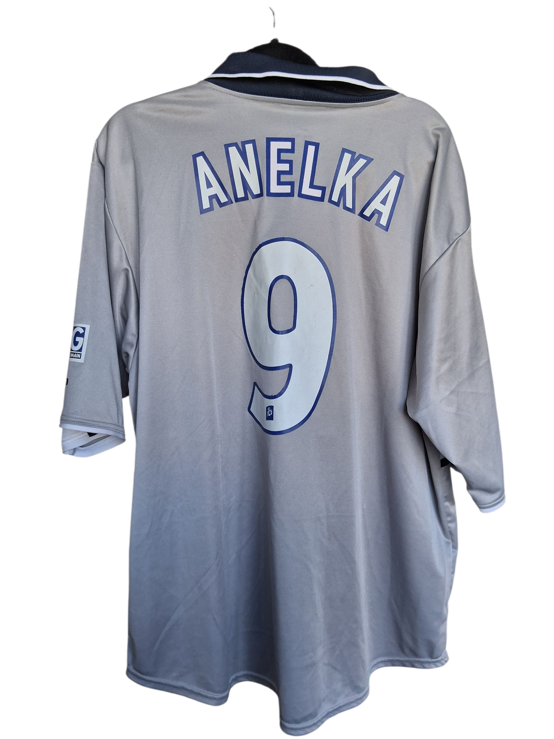 Maillot extérieur du PSG, dans la lignée des maillots gris du club. Ce maillot a été porté par des joueurs comme , Okocha, Robert ect... Ici il est floqué de l'international français Nicolas Anelka.